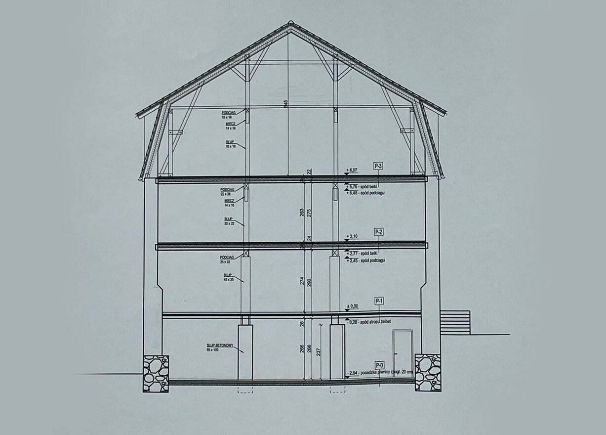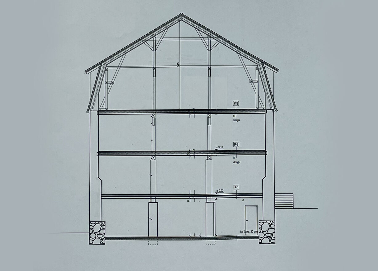 Jest to obiekt wolnostojący, trzy kondygnacjny, podpiwniczony, zakończony poddaszem. Wykonany w technologii tradycyjnej i przykryty czterospadowym dachem.