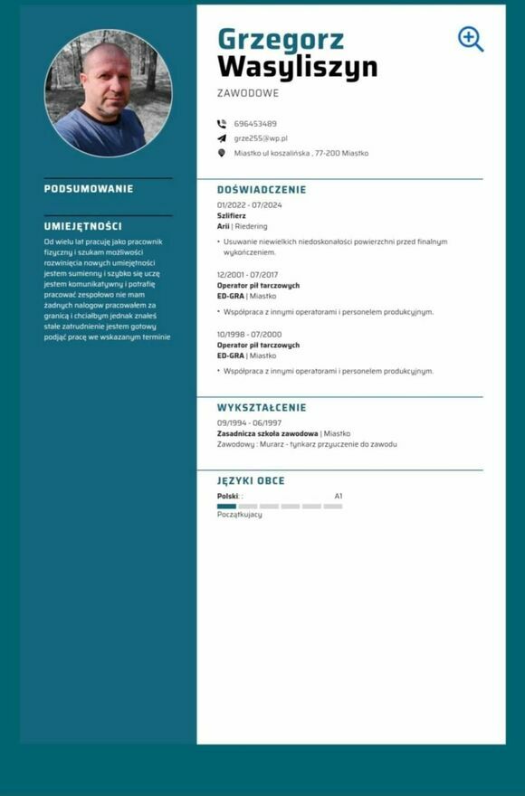 Witam szukam pracy w całej Polsce z zakwaterowaniem mam 47 lat bez nałogów alkoholowych i tytynowych i tym podobnych pracowałem w paleciarni na pilach tarczowych przy produkcji palet wiellopily, dwu-piły, oflisiarki piły taśmowe pionowe piaskarki ręczne piaskarki automatyczne szlifierki duże na pasach mam opanowane jeszcze 3 tyg na śmieciarce jako ładowacz nie posiadam prawa jazdy jeśli by ktoś miał informacje o pracy lub by szukał pracownika poprosze o informację może być praca w Polsce i za granicąGrzegorz