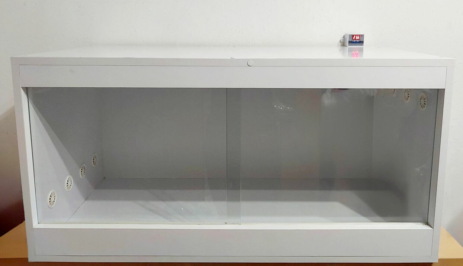 Front terrarium wyposażony jest w dwie grube szyby na solidnych prowadnicach. Zapewniają one doskonałą widoczność lokatora oraz łatwy dostęp podczas karmienia i sprzątania. :)